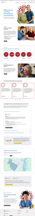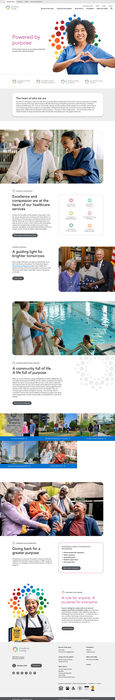 Goodwin Living has four main parent sites that we aimed to highlight clearly through a top-level header navigation. Within each parent site, there are more specific service-based sub-sites. To ensure ease of use, we focused on building a seamless site map and navigation flow. We also implemented a color-coding system: parent sites feature a rainbow highlight treatment, while individual service sites are distinguished by a dedicated focus and accent color.